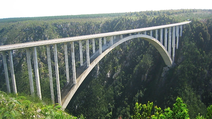 А также банджи-прыжки с моста Броукланс высотой 216 метров, расположенного в ЮАР, недалеко от города Найзна.
