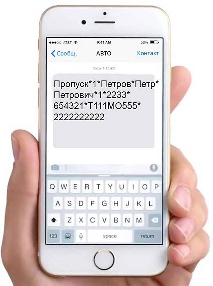 Формат сообщения: Пропуск*код цели*Фамилия*Имя*Отчество (если есть)*тип документа (код)*серия (если есть)*номер документа*номер машины или карты «Тройка»/«Стрелка» (если используете)*ИНН организации или название медицинского учреждения