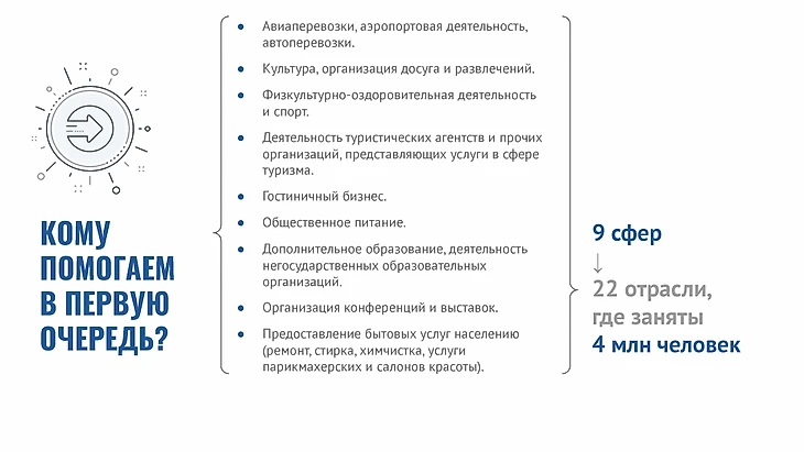 - Правительство уполномочено расширять круг поддержки отраслей.