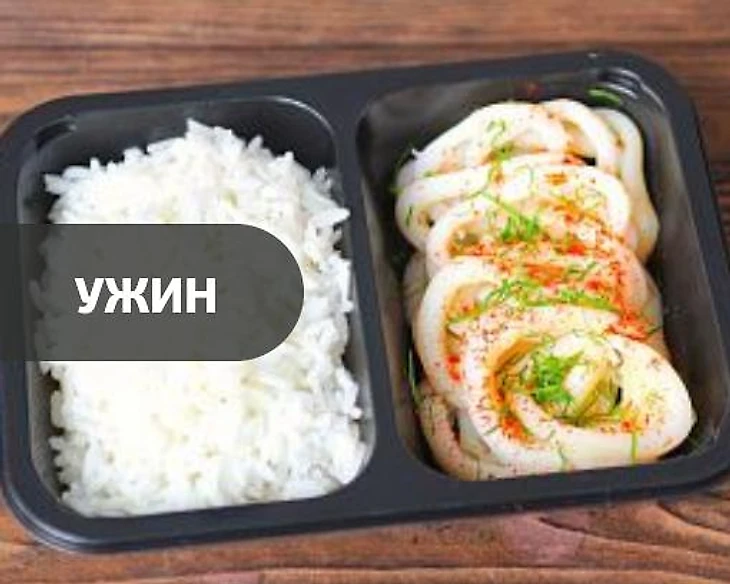 Кальмар отварной с рисом Жасмин и соусом горчично-укропным