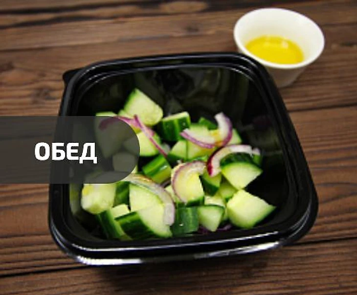 Салат из свежих огурцов, красного лука с маслом оливковым