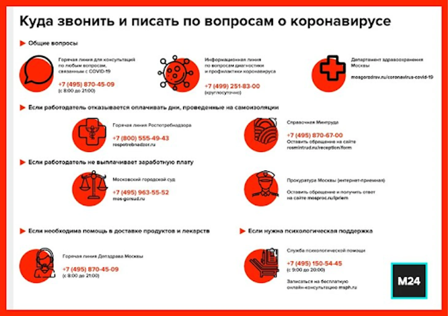 В связи с напряженной эпидемиологической обстановкой была создана горячая линия по коронавирусу в Москве. Специалисты ответят на ваши вопросы, помогут разобраться с трудностями и дадут нужные контакты.