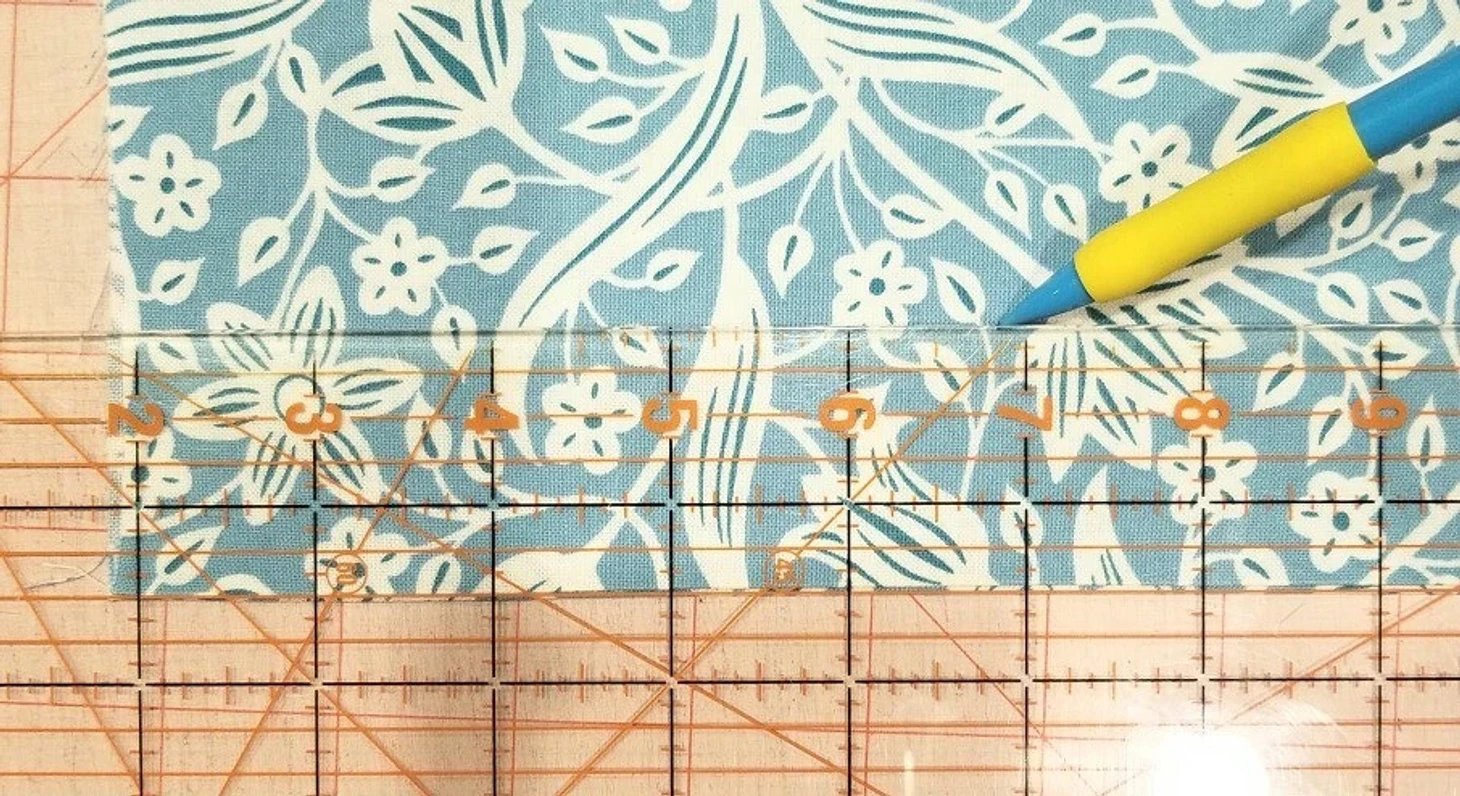 Положите деталь так, чтобы необработанные края были по бокам, а шов снизу. С помощью линейки отмерьте 3,8 сантиметров от нижней линии, пометьте и горизонтальную линию. От этой линии необходимо отступить вверх 2,5 сантиметра и провести еще одну линию.