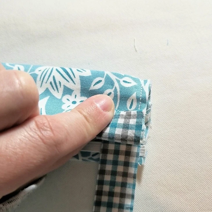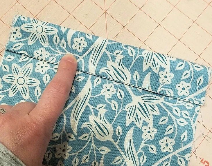 Отступите около 0,7 сантиметра от края, прострочите с помощью швейной машинки. Сделайте закрепки в начале и в конце.