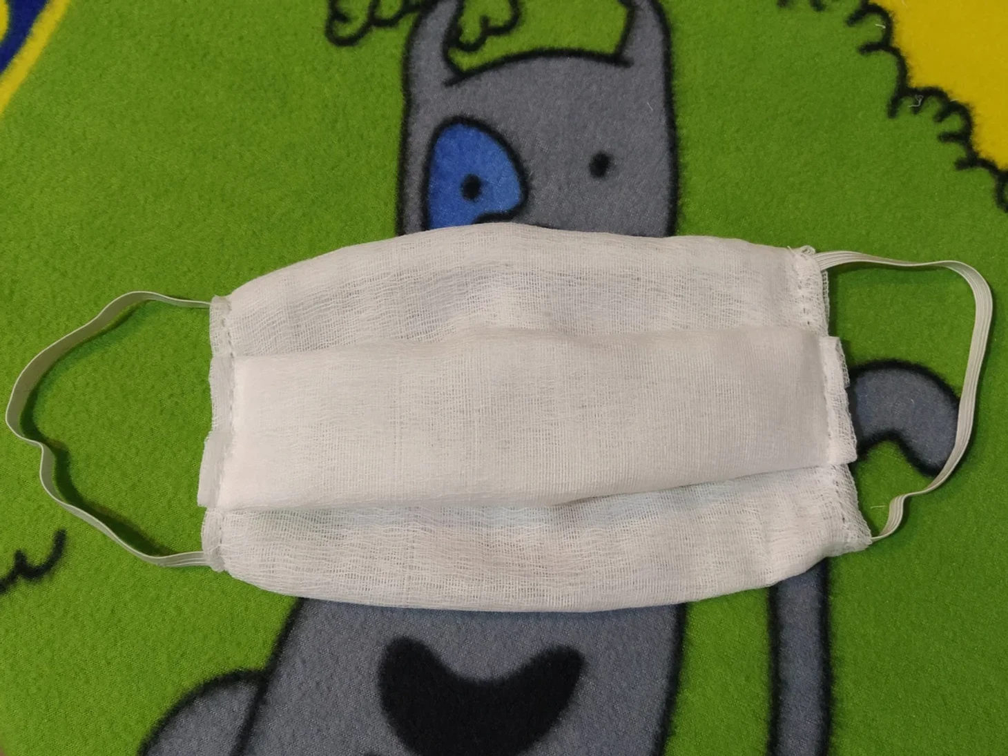 Маску такого типа лучше всего делать из тонкой хлопчатобумажной ткани или марли. Ткань не должна быть плотной - она будет складываться в 6 слоев и должна хорошо пропускать воздух.