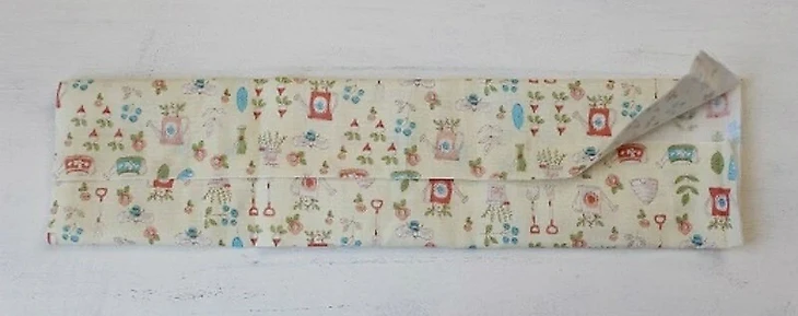 Сложите заготовку вдоль длинных сторон изнанкой внутрь, как на фото. Края должны перекрывать друг друга на 1,5−2 см.