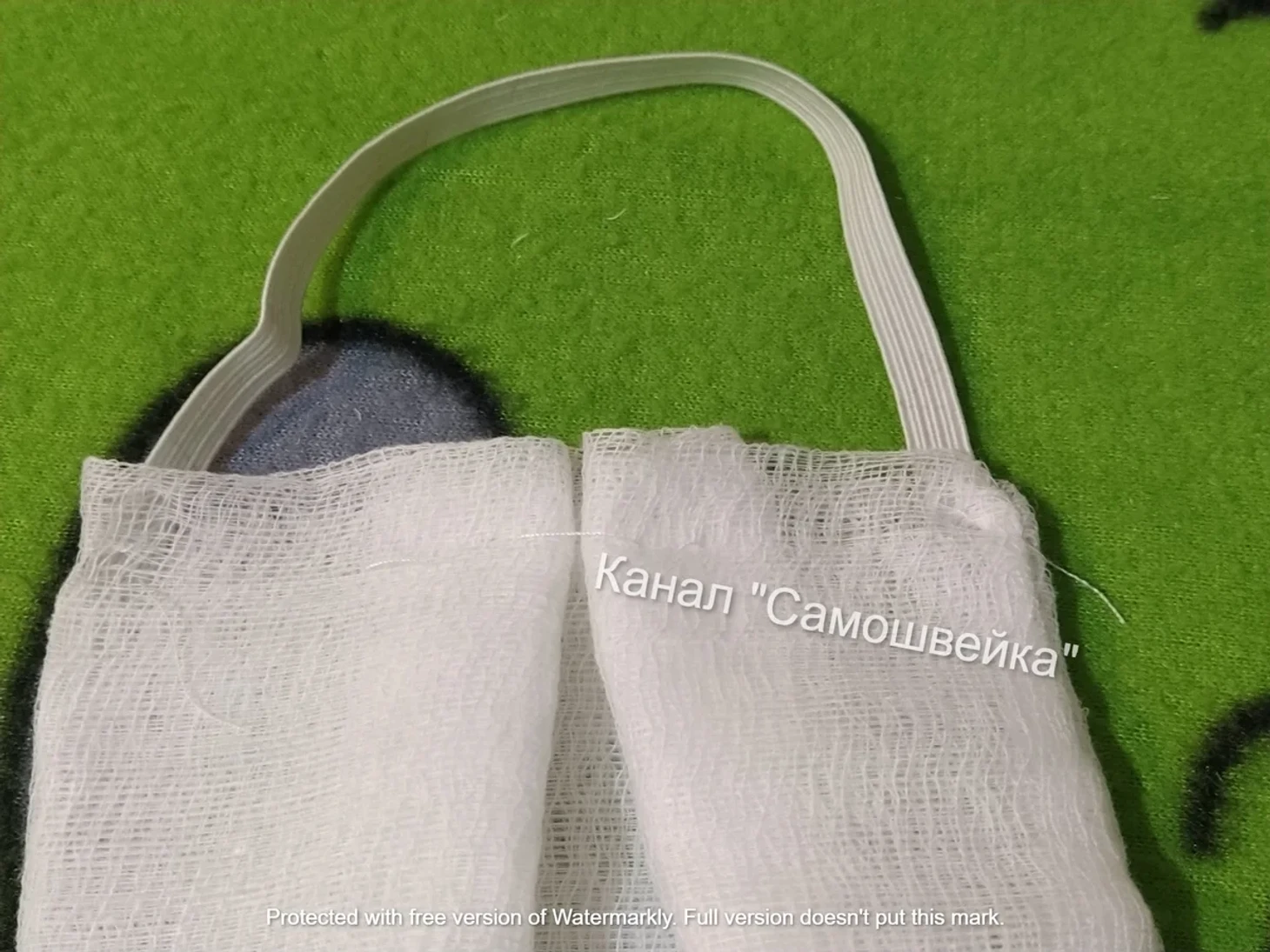 Определитесь с длиной резинок, для этого нужно примерить маску. Отрежьте кусочки резинки, проденьте их и свяжите узлами. Все готово, маску можно носить.