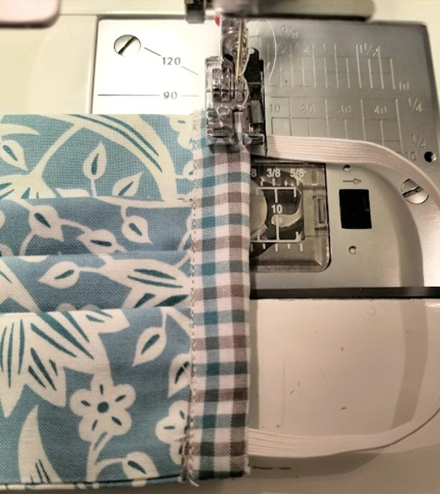 Снова нам поможет швейная машинка - пристрочите край к маске.