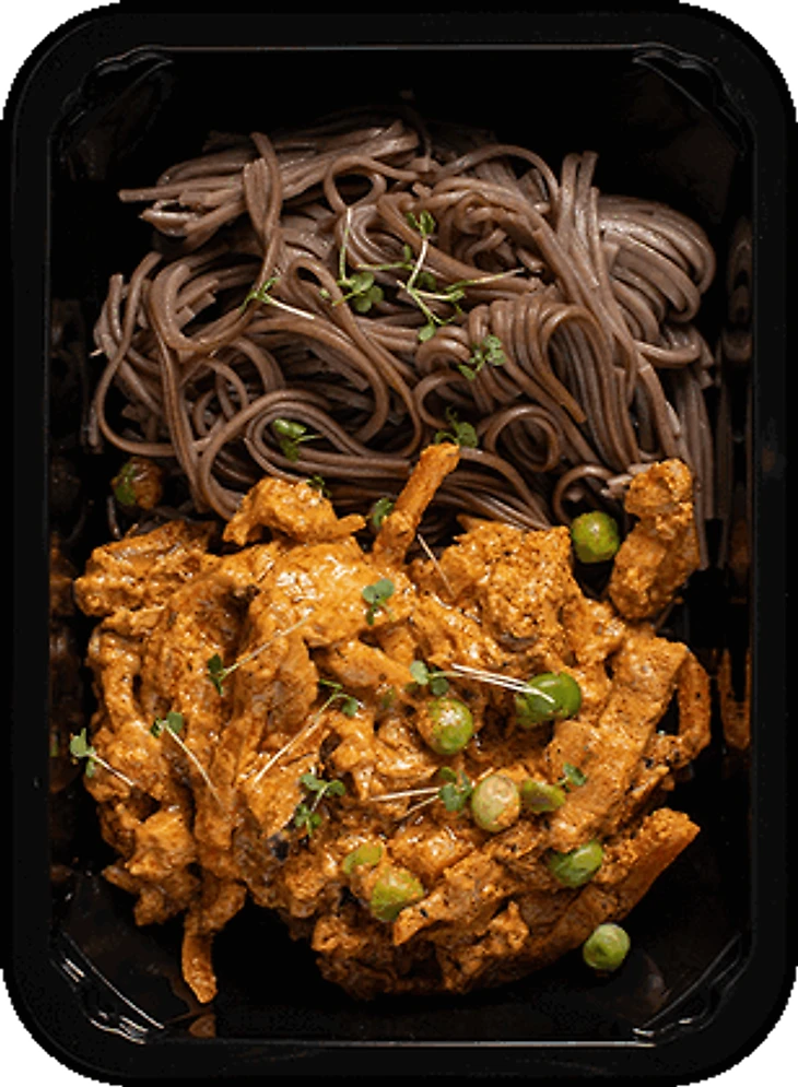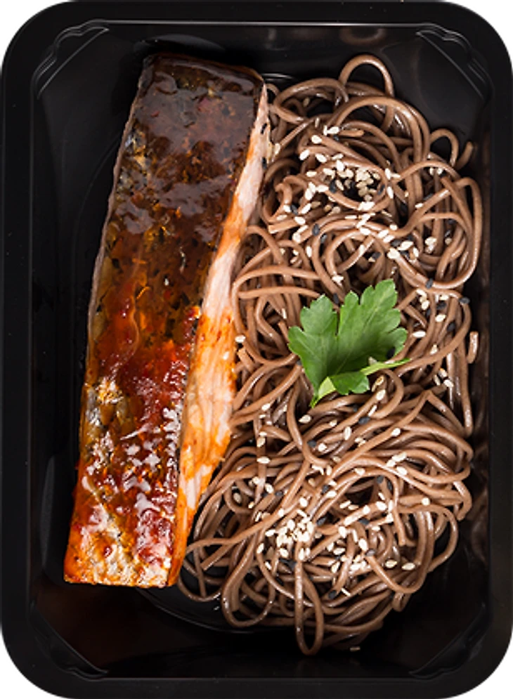 Лосось с медом и соусом “Шрирача” с лапшой “Соба”