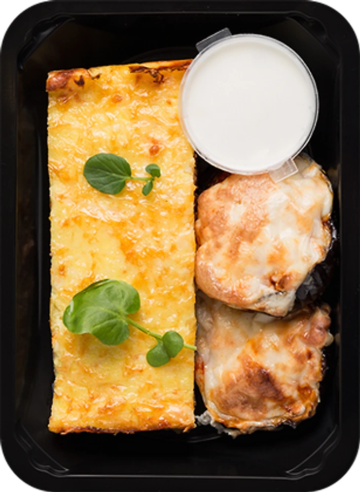 Запеченные баклажаны с сыром “Сулугуни” и картофельная запеканка