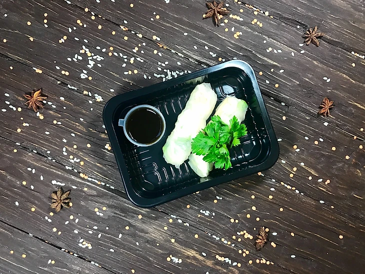 Спринг-роллы с тигровыми креветками, японским омлетом и соусом терияки