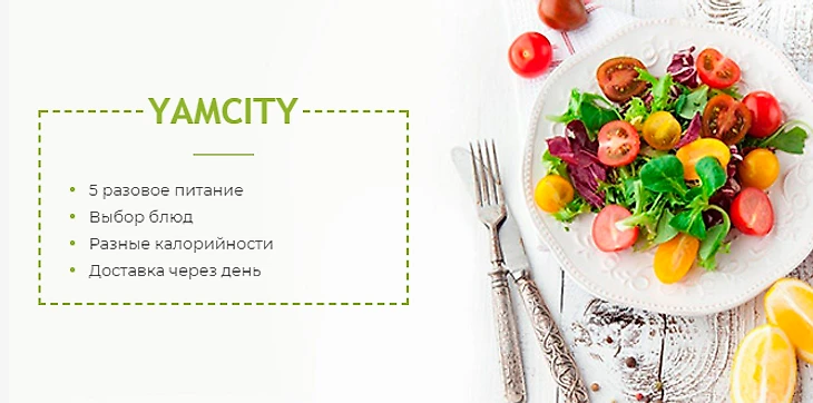 Меню Yamcity – стандартное меню правильного питания. Прекрасно подойдет для тех, кто хочет потреблять здоровую пищу, но не имеет достаточно времени, чтобы готовить. Также меню удобно тем, кто хочет поддерживать свой вес или незначительно его снизить. Один день питания обойдется в 990 рублей.