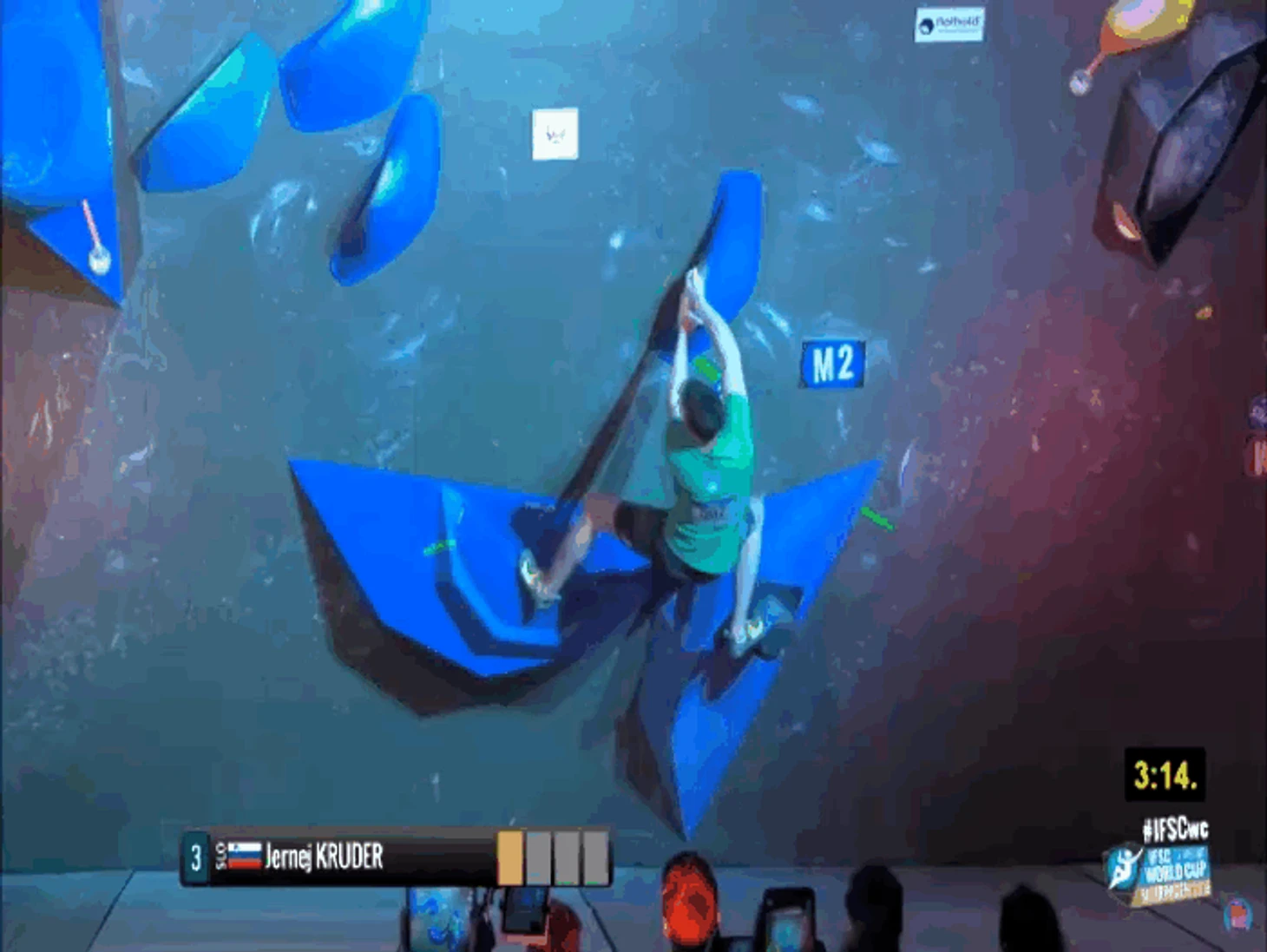Во-первых, состав. Меринген открывал болдеринговый сезон 2018 года и сказать, что эта сильнейшая семёрка финалистов из всех возможных вариантов было бы голословно на тот момент. Да-да, семёрка. В полуфинале разложить всех не получилось, и сразу три спортсмена показали одинаковый результат, поэтому квоту пришлось расширить согласно правилам. По итогам года мы узнаем, что все финалисты попадут в топ-10 сезона, а первые два места между собой и разыграют борьбу за Кубок мира. Да и вообще составчик по именам образовался серьёзный, буквально каждый второй – чемпион мира. Крюдер, Нарасаки, Шуберт, Таката, Чон, Корну и Рубцов. Алексея вынес отдельно, ведь благодаря нему у нас было за кого болеть в финалах весь сезон. Как это добавляет в эмоциях при просмотре международных соревнований!