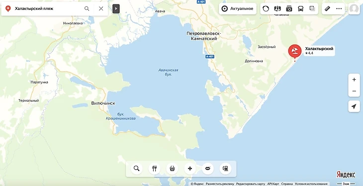 Авачинская бухта – место, где, по данным ученых, погибло 90% живых организмов, и куда впадает якобы ядовитая река. Отделяется от Халактырского пляжа мысом Маячный.