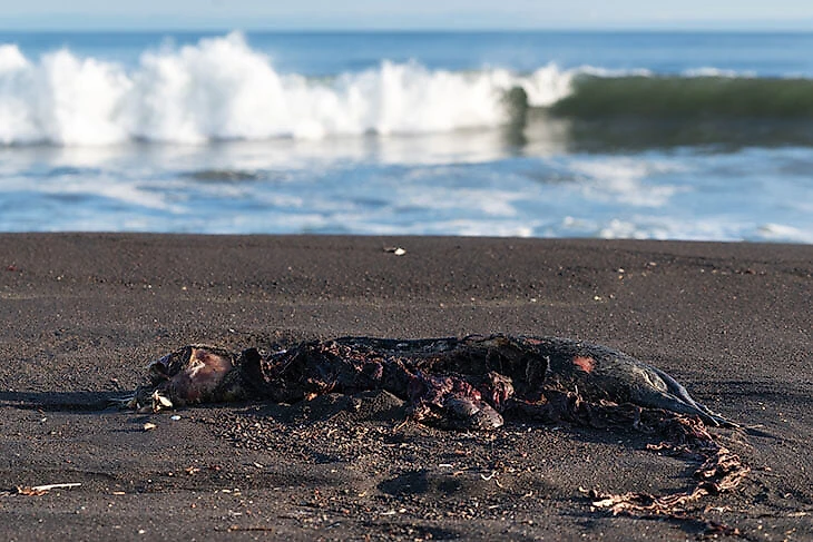 – Да. Дело в том, что, например, Халактырский пляж отличается тем, что это открытый берег, там песчаное дно, там нет живности, которая могла бы погибнуть. Поэтому на берег ничего не выбрасывалось. Только в конце сентября во время шторма выбросило большое количество маленькой рыбешки.