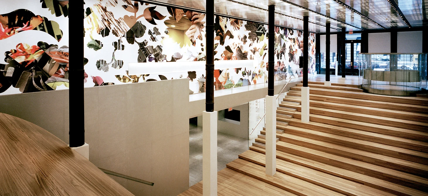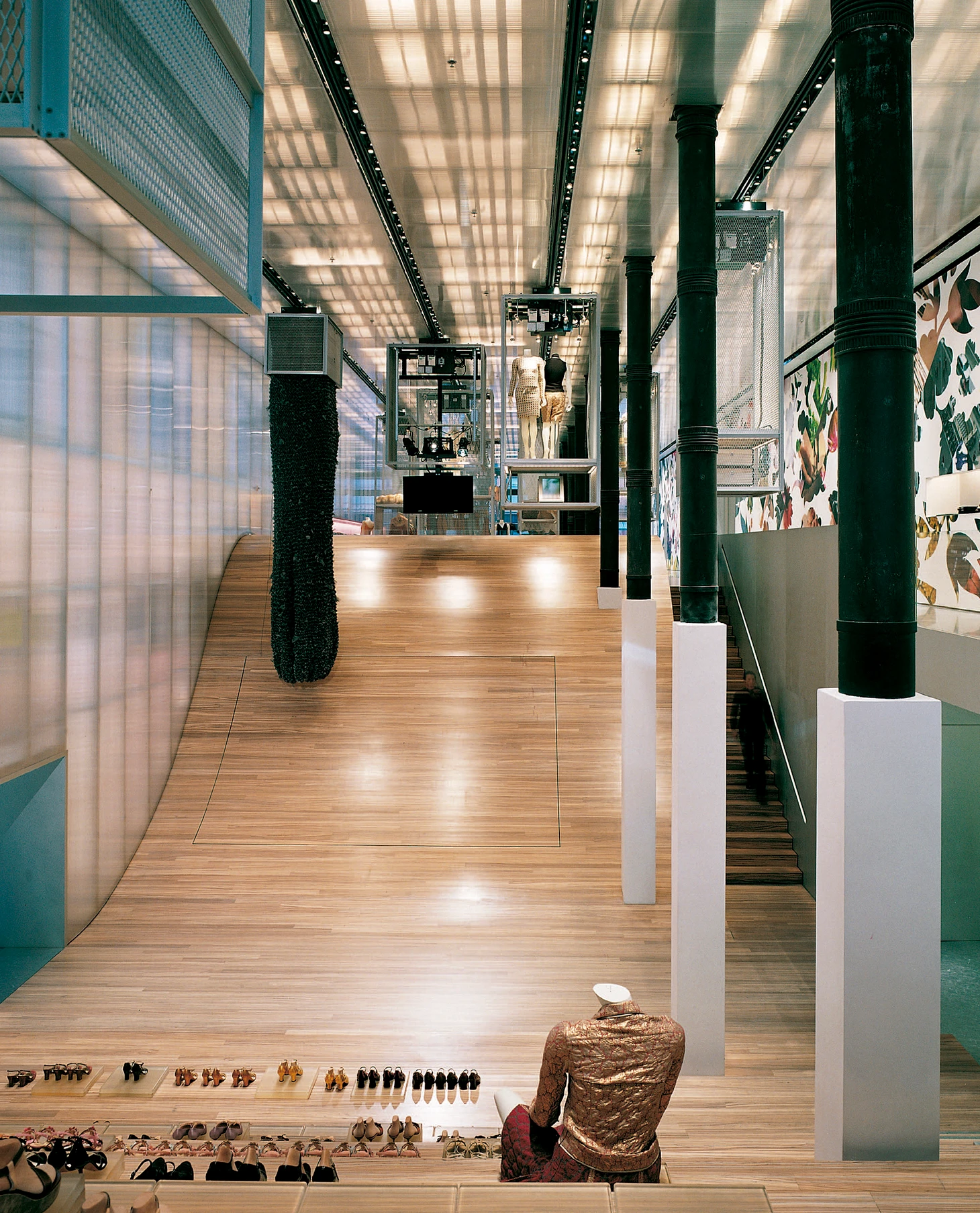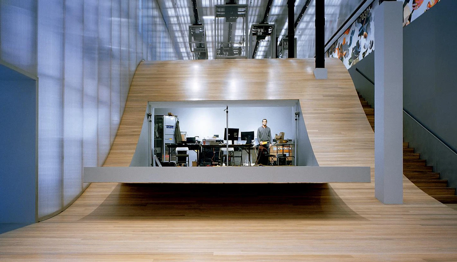 Такого же взгляда в своих творениях придерживается архитектор Рем Кулхас. Некоторые из его зданий выглядят как мечта скейтбордиста: пол в них переходит в стены с радиусом, схожим с хафпайпом и мини-рампой. Так, например, выглядит центральный магазин Prada в Нью-Йорке в его оформлении: