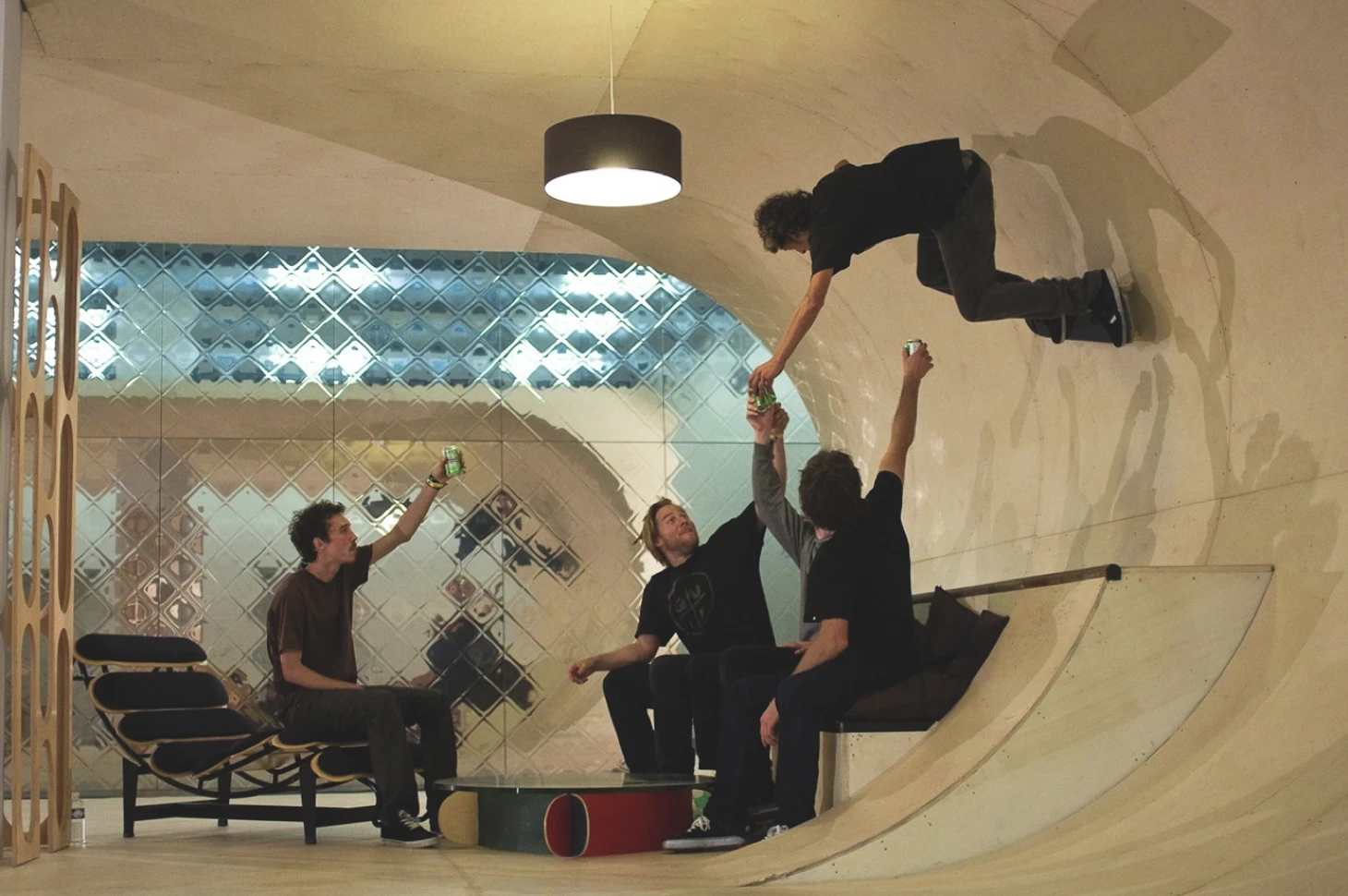 Это отличный пример того, когда руками архитектора творит скейтбордист — такой человек сочетает в себе сразу два измерения. Он понимает, что у объекта может быть другое, непрямое значение. Привычный дизайн в таком случае уже не работает, ведь создаётся новая реальность, которая на деле намного круче, чем это задумывалось в чертежах.