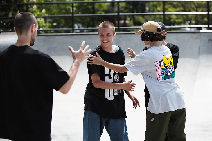 Две недели мы катали с командами Social Skate School и сборной России по скейтбордингу в наших южных краях. Все райдеры — молодые парни и девушки из разных городов, каждый со своей историей, простой или сложной. Их объединяет понимание, что они хотят связать свой путь с доской. Когда погода благоволила, боуловые райдеры ловили солнце на бетонных волнах Юбилейного. В это время стритовая команда оттачивала соревновательные навыки на олимпийской площадке — для этого их ждала SLS плаза в Вишняках. Там они вместе с тренерами откатывали попытки для контестов, снимали их на видео, а затем разбирали ошибки и дорабатывали свои линии. Общими локациями для обеих команд стала еще закрытая площадка рядом с ЖК, где ребята развивали выносливость на дорожке памп-трека, и парк на Слоне, где они скользили по граням в тени деревьев. По вечерам ребята смотрели лучшие мировые соревнования, а в дождливые дни свои двери открывал наш боул «Alvar Aalto bowl». За это время мы провели ребятам экскурсию по ключевым скейтпаркам города и офису XSA. И, хочется верить, показали Краснодар как лучшее место для скейтбординга.