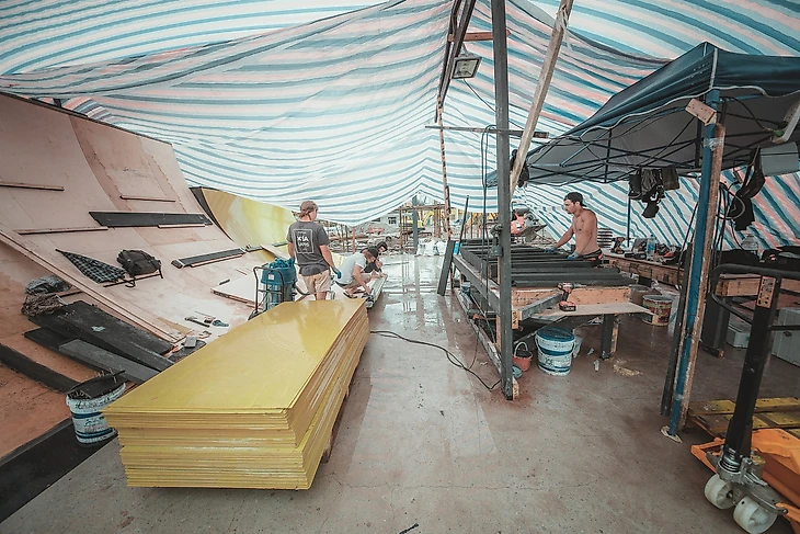 Если раньше для финиша мы использовали фанеру*, то теперь перешли на стекловолокно. Это значит, что наши скейт-парки стали в разы качественнее и долговечнее.