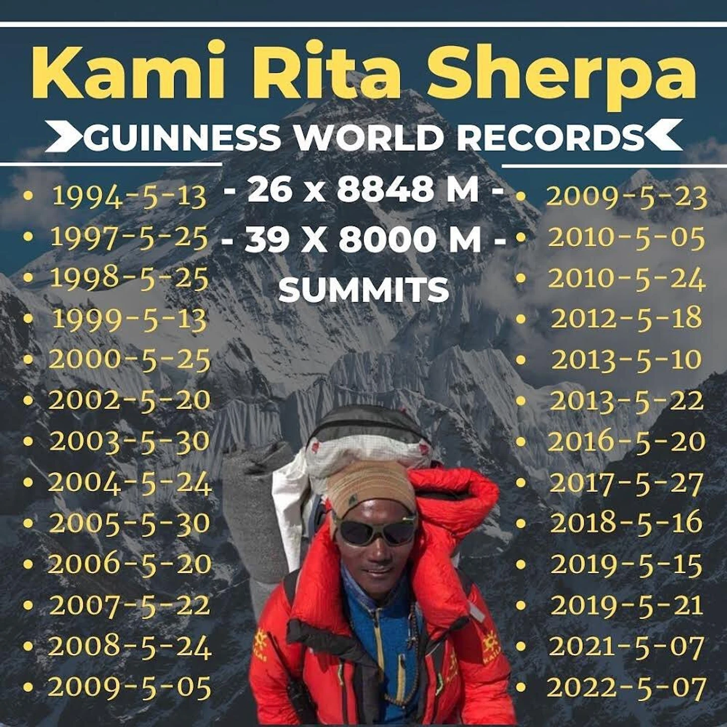 С 1994-го по 2017-й Ками совершил 21 восхождение на Эверест в составе различных групп – он сопровождал туристов и помогал им в пути. Только тогда он узнал, что повторил мировой рекорд, став третьим в истории альпинистом, которому удалось покорить гору 21 раз.