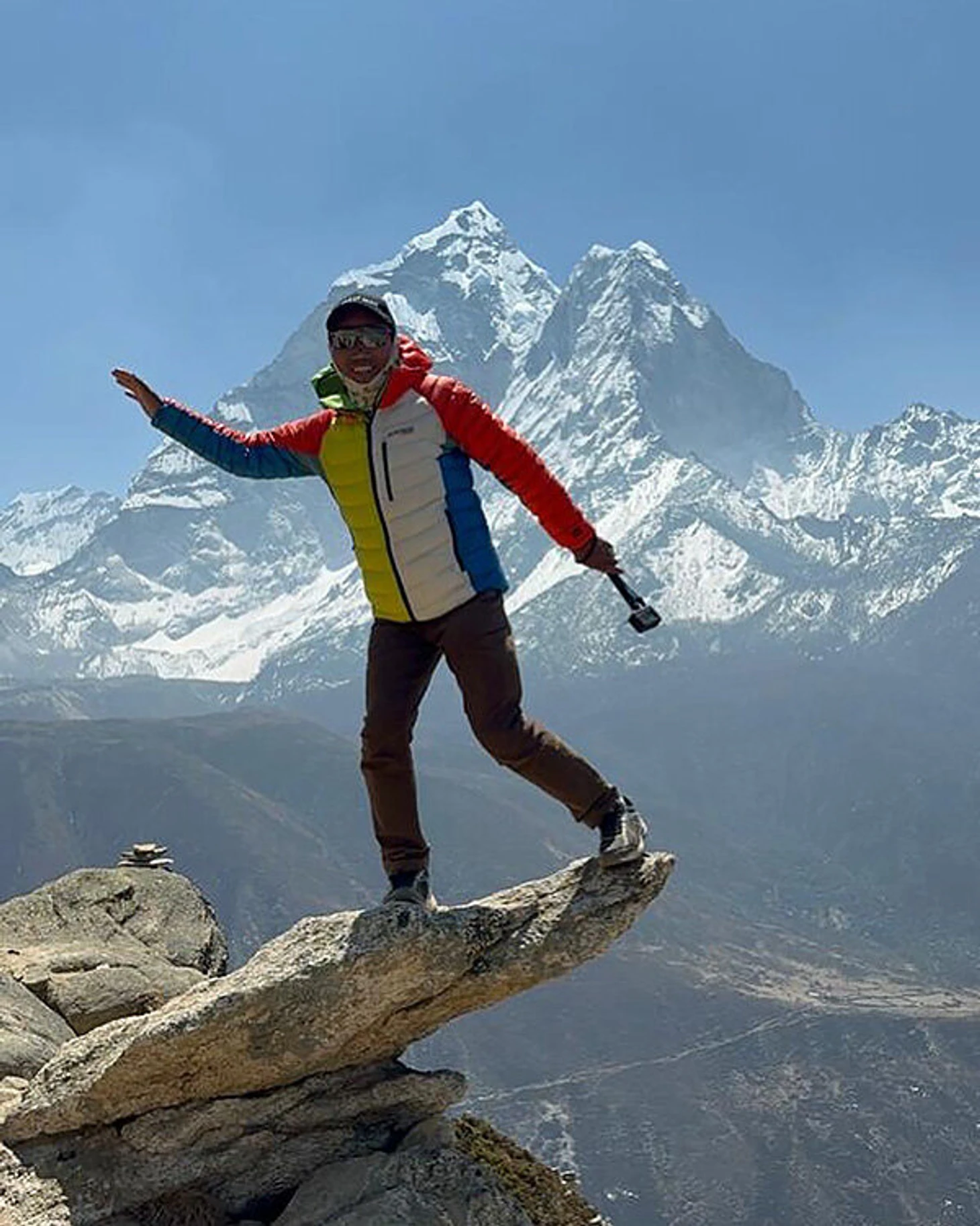 У него уже 40 восхождений на горы-восьмитысячники: в частности, восемь раз он поднимался на Чо-Ойю (8188 м), три раза на Манаслу (8163 м), один раз на Лхоцзе (8516 м) и однажды на K2 – вторую по высоте гору мира (8614 м) и самую сложную вершину для восхождения.
