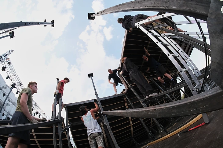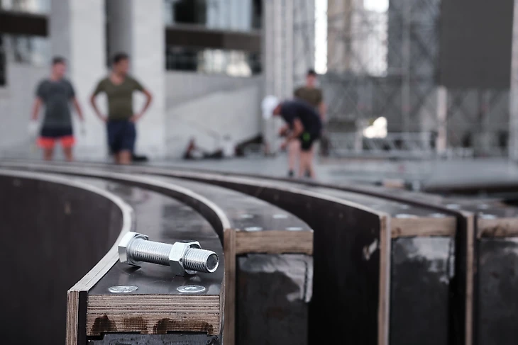 Детали для «Царь-рампы» (сказочно большой, 400 кв. м!) изготовили на нашем инновационном производстве в Краснодаре — и металл, и дерево, 96 модулей и тысячу микродеталей — а затем с любовью отправили в путь. Часть команды встретила доставку уже на локации — на городской эспланаде у пермского Театра-Театра — и знатно потрудилась, чтобы в кратчайшие сроки качественно собрать рампу. Монтаж занял 48 бессонных часов, но руки наших опытных билдеров помнят многое...