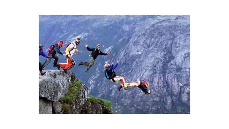 Там же как раз кризис 1998 года случился, я, как и многие другие, попал на бабки, курс переигрался, стало вообще не весело. Поэтому мы разобрались с делами, собрали с парнями вещи и уехали в Норвегию примерно на годик, путешествовать и прыгать. Там я продуктивно время провел — полетал с гор 15, с которых никто до меня не прыгал. Случилась классная коллаба моих навыков: мой альпинистский опыт, парапланерный + картографическая грамотность. Я тупо открывал Google Maps и придумывал себе новые вызовы. В Норвегии мы зажгли люто тогда, страна от визита русских парней вздрогнула. За то лето мы прыгнули со многих новых гор и открыли много новых экзитов — от Ставангера до Стены Троллей. И даже забрались севернее на Гуксору и Вайкисокса.