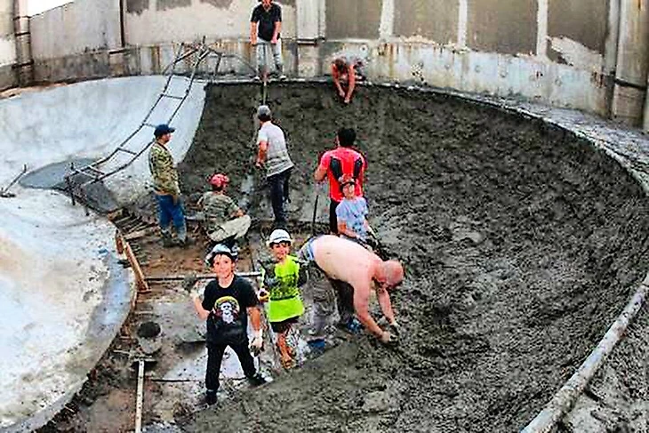 Стройки — это мой, как я говорю, крест. (Смеется.) Они постоянно где-то рядом. Я построил как минимум два аэродрома. Первая стройка лютой была на адроме Дракино (1938 года основания) — две гостиницы, ресторан, картодром, каток, трасса для мотокросса, несколько ангаров. Второй построили вообще с нуля на площадке химавиации, она была в ужасном состоянии. Нам потребовалось 19 лет непосильного труда. Теперь это АОН (аэродром авиации общего назначения). Там представлены все виды сервиса — от топливной заправки до гостиниц, ресторанов, арендных площадей в ангарах и в том числе легендарный скейт-парк с боулом по конструкции Жени Конышева. Возвели его с корешем Каплей на пустыре. Все удивляются, когда узнают, думают что мы заброшку облагородили. Но нет, ошибаются, мы сами построили этот ангар. Разобрали танковый полигон в Новом Быте, за ящик водки купили столбы и фермы… Там же со временем пульчик появился, хотя планировался спортзал. Залили его вместе с Женей Конышевым, Тишкиным и другими ребятами. Всей толпой ковырялись, даже дети мои в бетоне возились. Некоторые уже серьезные билдеры, можно сказать, прошли тогда боевое крещение. Жестко было на той стройке. Зато вон что в итоге вышло, спот живет свою жизнь, преобразовывается и улучшается. Кэмпы, контесты, тусовки. У нас уже 8 лет работает скейт-школа, в которой я тренирую — SPS (Skate Progression Session).