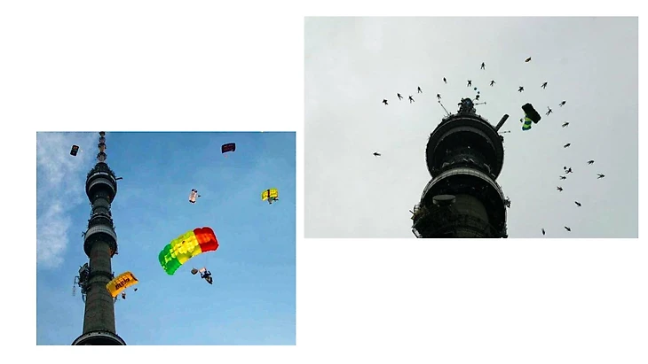 Вся эта история очень сильно меня затянула, я гнал без стопа дальше — я был первым человеком, который прыгнул в Марокко во время мотоциклетного трипа. Безумная красота! Много где по миру бывал и много куда прилетал именно с целью прыгнуть. Групповые прыжки с Останкинской башни — организовывали массовый прыжок с отметки 367 метров с построенного из лаера помоста на MOSCOW BASE OPEN AIR. Одновременно прыгнуло 30 человек из 20 стран мира. На следующий год мы побили этот рекорд — 36 человек. Он до сих пор не побит.