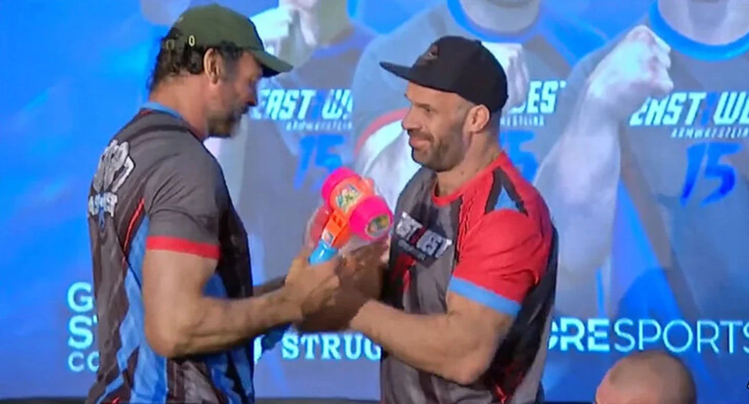 Шоу Ларратта в армрестлинге: звал соперника «хлопчиком», сорвался на Цыпленкова, забрал молот-пищалку