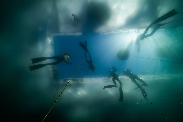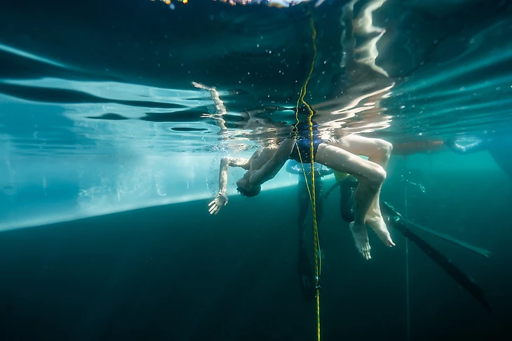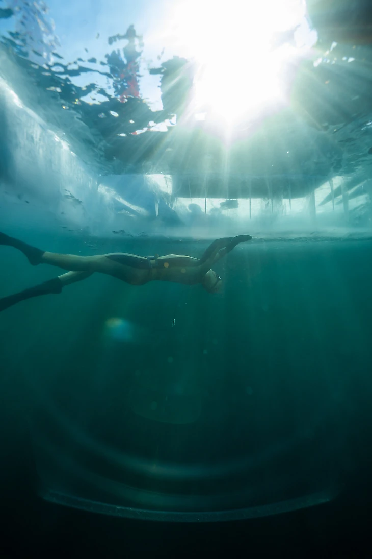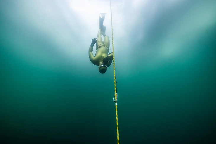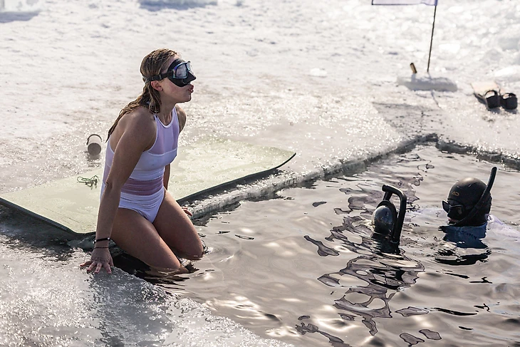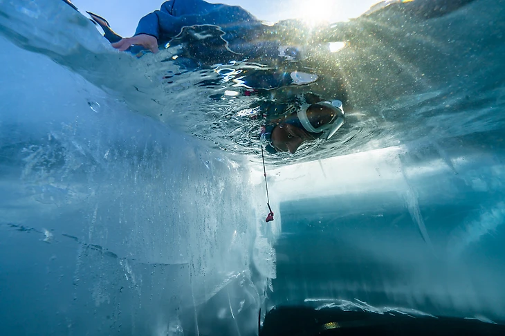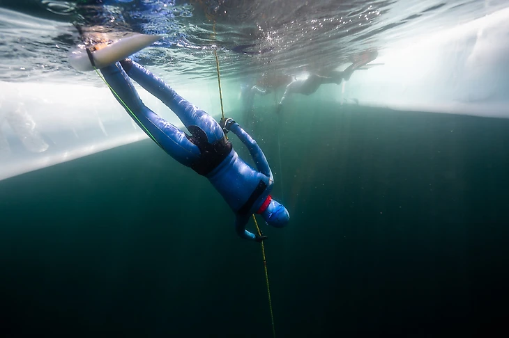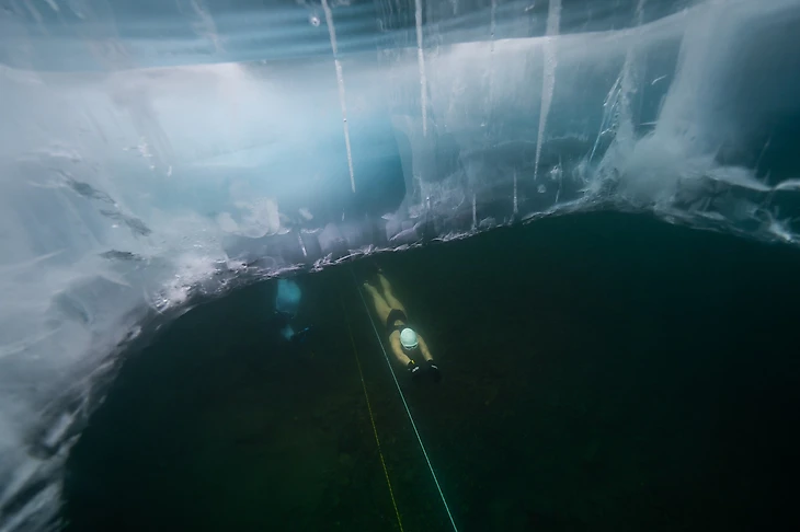 Сделать ныряние на задержке дыхания еще более захватывающим могут условия вокруг – например, самое глубокое озеро в мире, ледяная вода и толща льда.