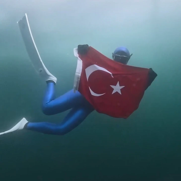 А также рекордсменка мира и первая спортсменка из Турции, нырнувшая на 100 м в теплой воде, Шайка Эрджюмен.