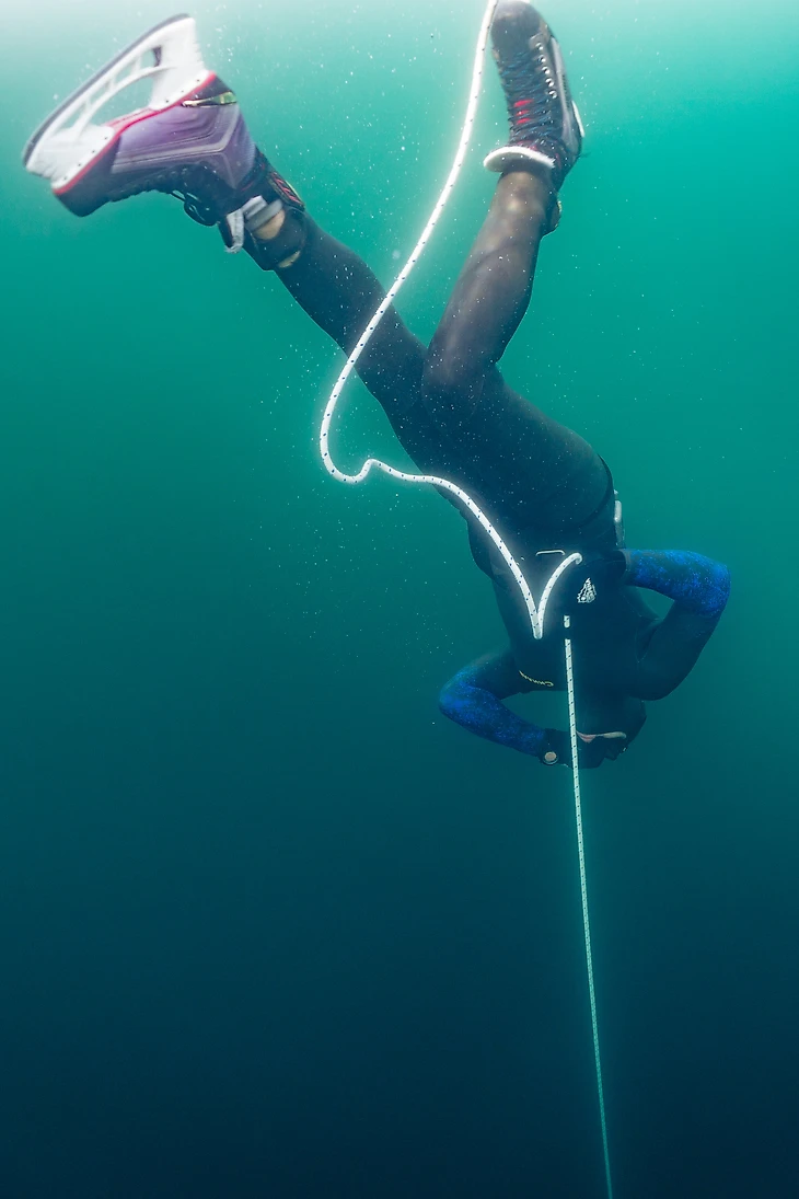 Развлечения фридайверов: ныряние в купальниках и хоккейных коньках