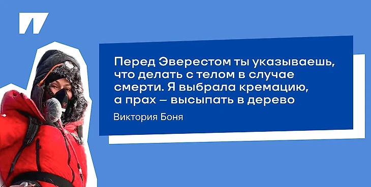 Перед восхождением указываешь, что делать с телом в случае смерти. Виктория выбрала кремацию, а прах попросила высыпать в корень дерева