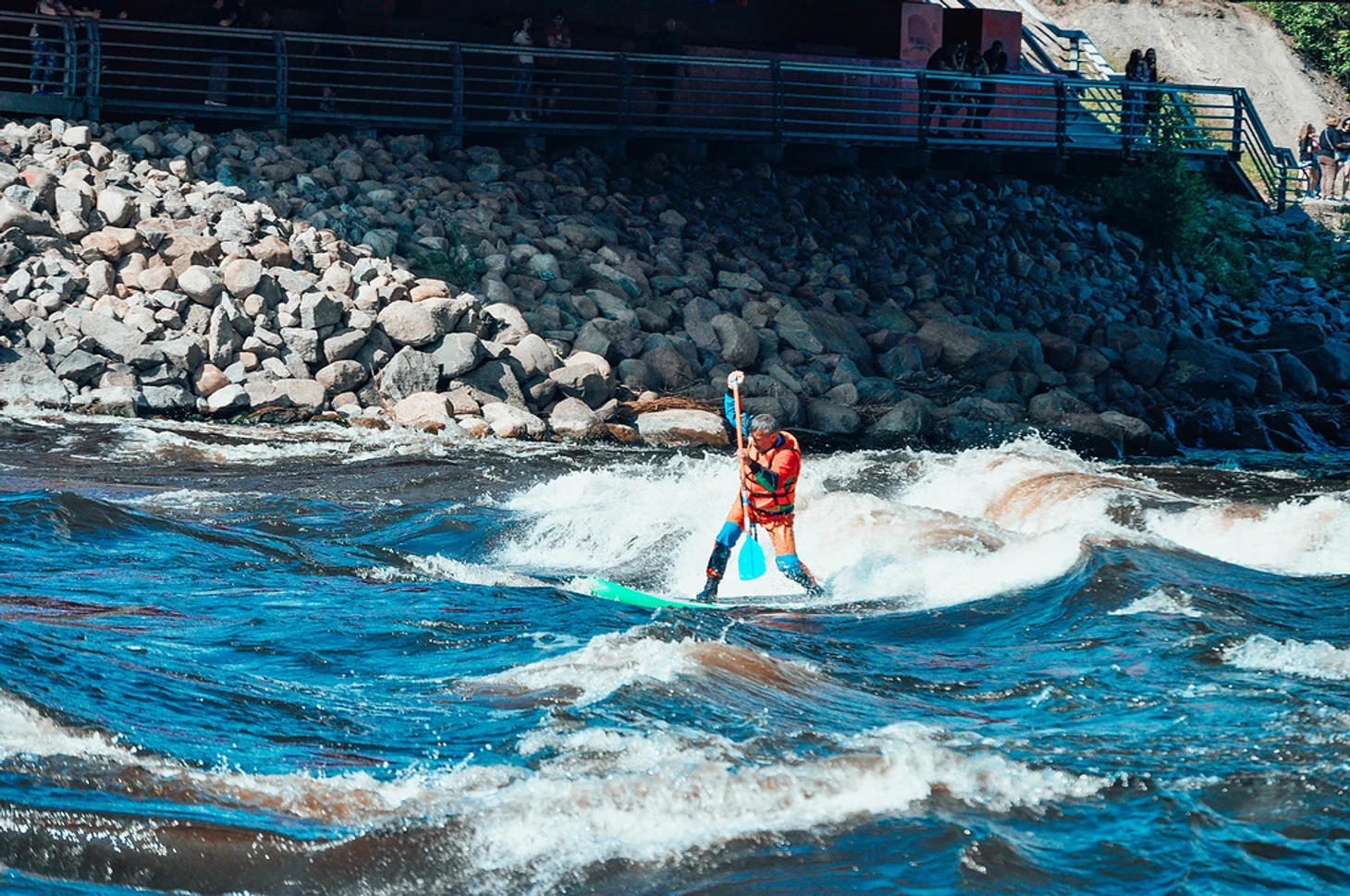 Речной падлбординг – это направление, включающее сплавы по бурной воде, фристайл SUP, речной серфинг. Это одна из самых сложных и зрелищных форм SUP, требующая не только физической подготовки и координации, но и глубокого понимания гидродинамики, управления доской, работы с веслом и взаимодействия с потоком. Речной падлбординг – это на границе спорта и искусства. Бурные северные реки дают возможность ловить волны, прыгать в пороги, скользить по стоячим валам и выполнять трюки.