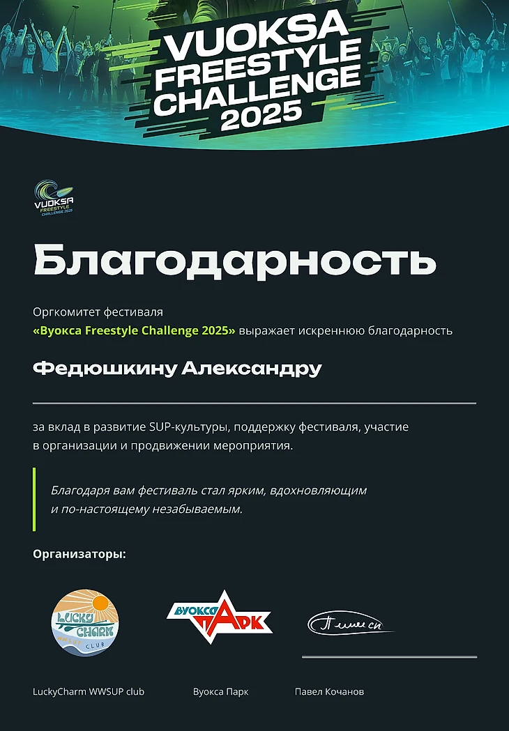 14 июня 2025 года в поселке Лосево (Ленинградская область) на базе отдыха «Вуокса Парк» прошел фестиваль Vuoksa Freestyle Challenge 2025.