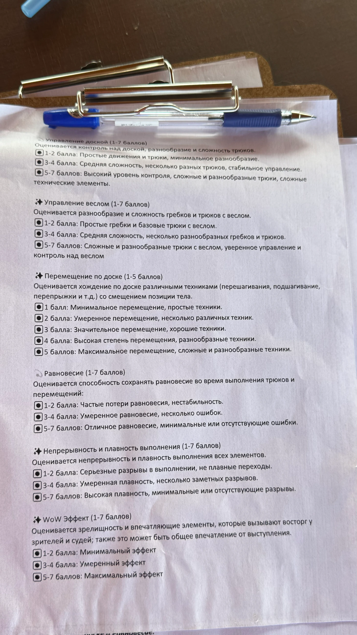 Параметр «Управление доской» оценивает перемещение доски в пространстве, а остальные критерии созданы для оценивания трюков.