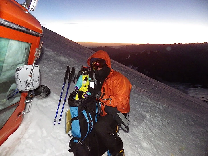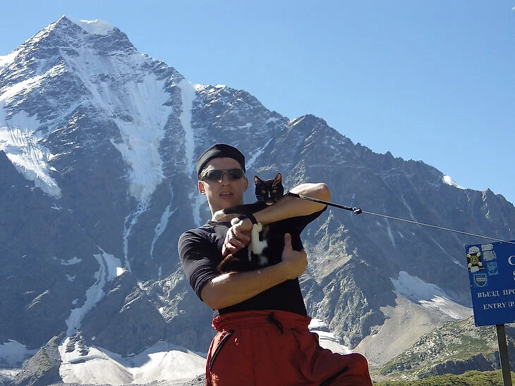 «Мы вместе с котом по кличке Граф поднялись на Эльбрус на высоту 5000 метров. Восхождение вместе с акклиматизацией заняло неделю, – рассказывал Андрей Останин, хозяин кота. – Я взял с собой Графа, потому что не было желания ехать в путешествие одному. В последний момент ко мне решил присоединиться друг, но я уже настроился на путешествие с котом».