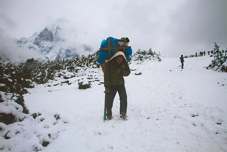 Стоимость услуг портера обычно определяется за килограмм веса груза, который он переносит. Дельта очень большая, потому что одно дело – нести по тропе, где растет трава, и другое – по сложным скалам. Обычно это от 2-3 долларов за кг до 50 долларов на самых сложных участках.