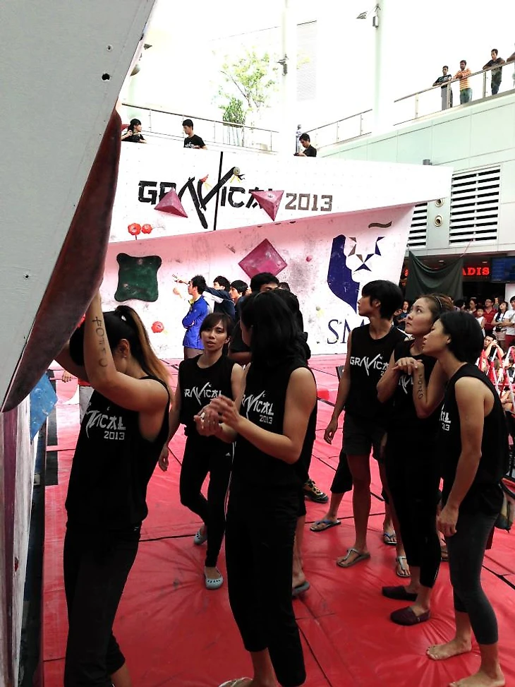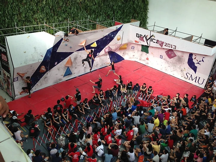 Первыми после новогодних праздников начинают соревноваться в экваториальном Сингапуре. Команда скалолазов Сингапурского университета менеджмента (Singapore Management University) седьмой год подряд организует боулдеринговые соревнования GRAVICAL под девизом “Преодолей гравитацию!” В этом году они прошли с 11 по 13 января. У организаторов есть несколько уникальных традиций: приглашение каждый раз известного зарубежного постановщика трасс – так, в прошлом году приезжали французы Тонде Катийо и Флориан Эскуффье, а в этом – немец Кристиан Бенк, все с опытом подготовки трасс для этапов Кубка мира, специальный боди-арт со своим рисунком в зависимости от соревновательной категории, а ещё ареной сражений становится не спортивный комплекс или стадион, а торгово-выставочный центр.