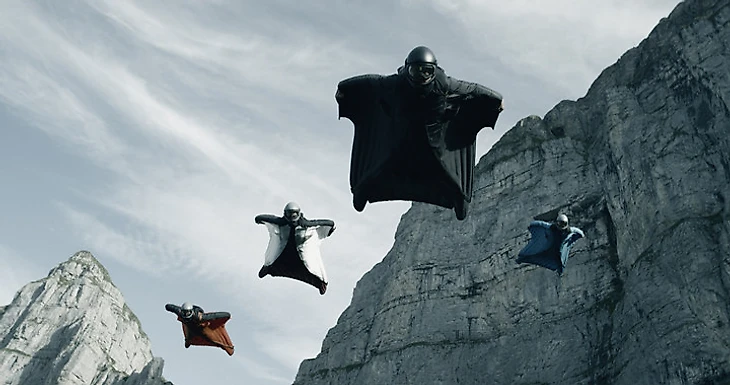 Одной из главных сцен фильма является уникальный по сложности прыжок вингсьютеров с горного склона, который при просмотре на большом экране выглядит как безумный аттракцион, пугающий реалистичностью.