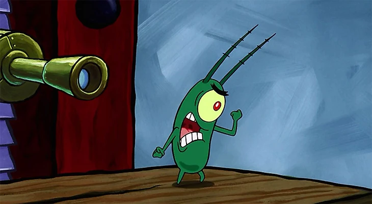 Завидует мистеру Крабсу, потому что у него — успех, клиенты, власть и девочки, а у Планктона — паутина, тлен и жена-робот, которая только и делает, что пилит.