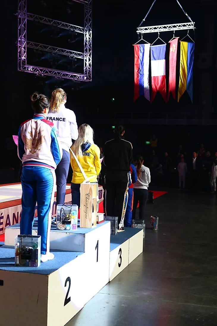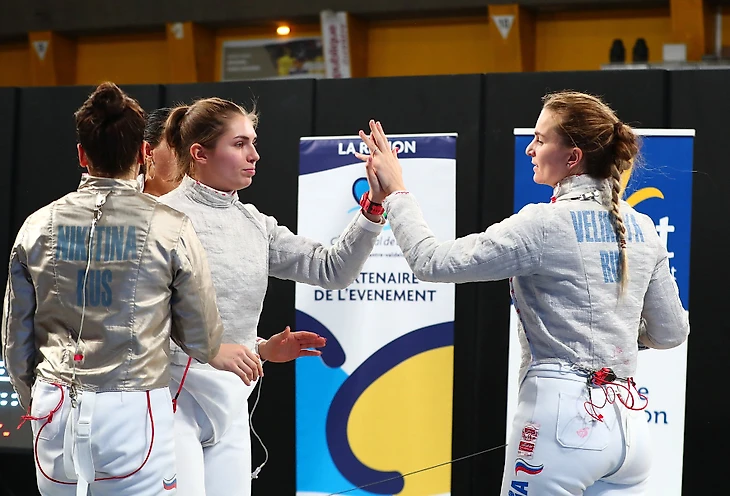 Шестое место заняла Софья Позднякова, которая проиграла украинке Ольге Харлан (10:15). Четырнадцатое - у Яны Егорян, обыгравшей за вход в 16 Софью Великую (15:10), но в следующем бою уступившая представительнице Франции Шарлотте Лембах. Софья Великая – 17 место. Бронзу поделили между собой Ольга Харлан и китаянка Яци Шао. Итог: первое место - Манон Брюне (Франция), второе - Ольга Никитина (Россия), третье - Ольга Харлан (Украина) и Яци Шао (Китай).