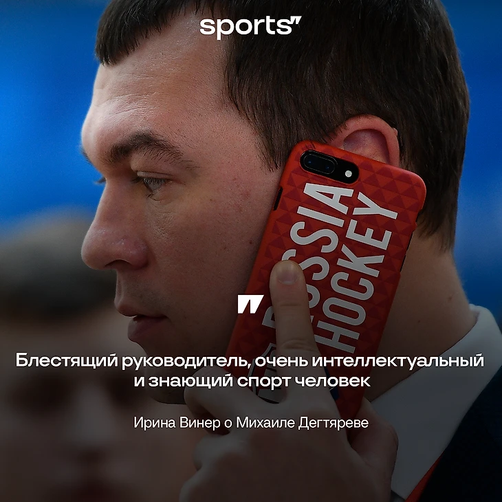 ● Босс художественной гимнастики Ирина Винер не скрывает восторг: «Я была в Хабаровском крае в прошлом году – блестящий руководитель, очень интеллектуальный, очень знающий спорт в том числе человек. Развивал на высоком уровне спорт у себя в Хабаровском крае, и, уверена, так же будет развивать спорт во всей России».