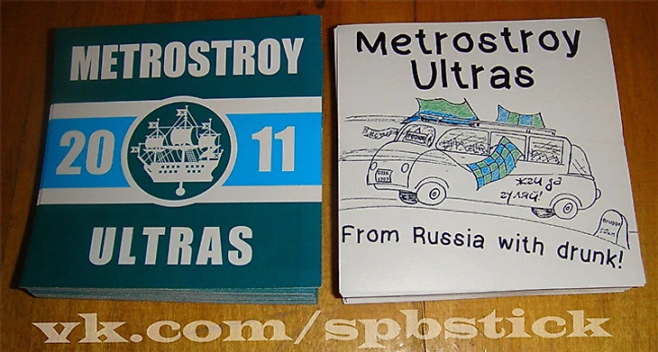 А на днях мы сделали шарфы – в фанатской теме это называется барскарф. Без всяких надписей – просто цвета клуба и по краям вышивки «Метростроя» и герб Санкт-Петербурга. Ничего лишнего и со стороны смотрится красиво.