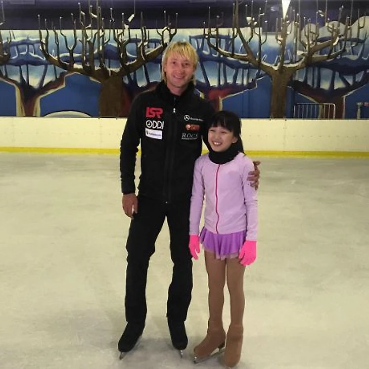 «Вчера приступил к тренировкам и встретитлся с моим маленьким другом Мией Хонда из далекой Японии. Она мне всегда приносит удачу», – написал Плющенко.