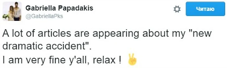 Габриэла Пападакис: «Я в полном порядке, расслабьтесь»