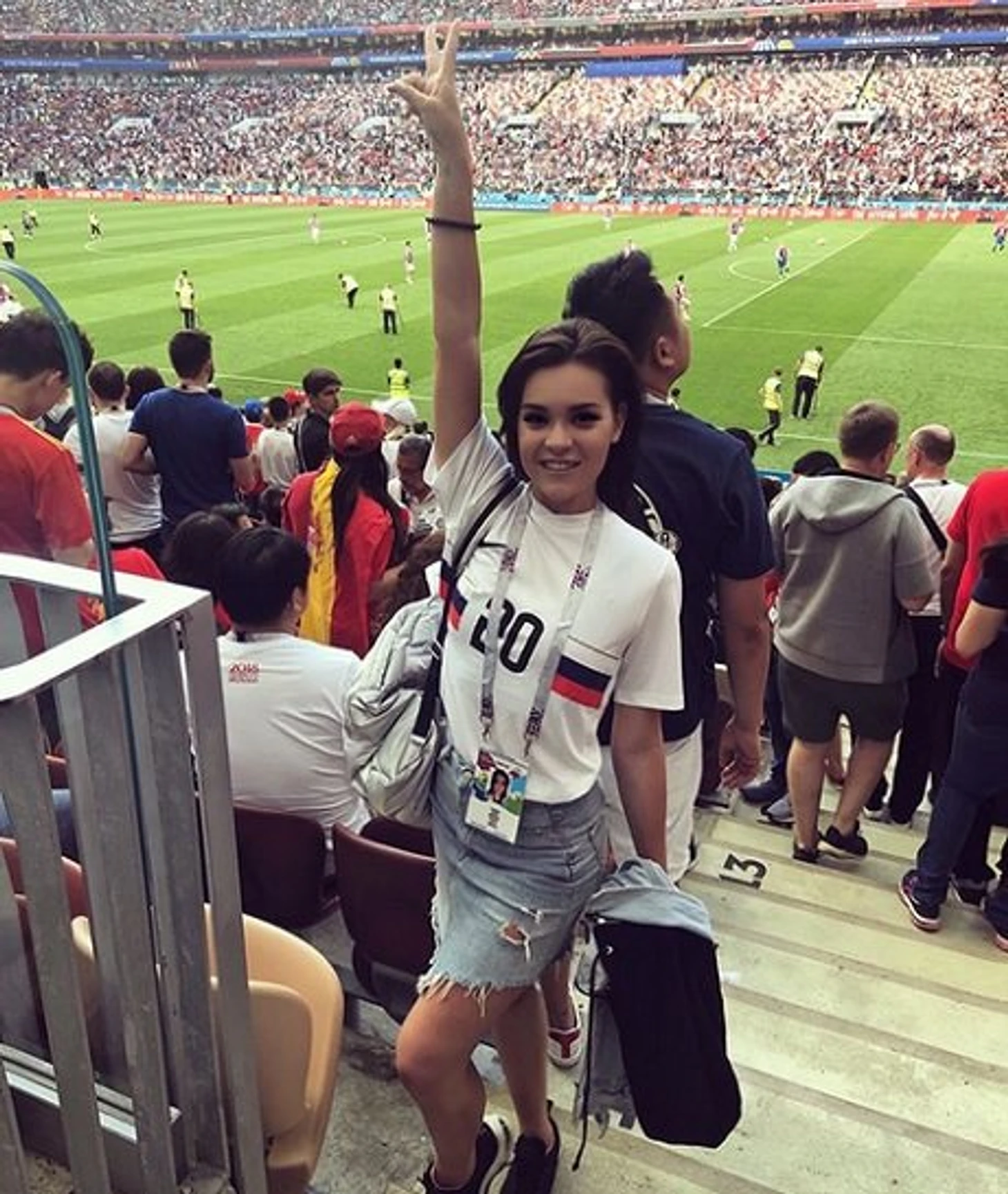 Сотникова, праздновавшая день рождения 1 июля, посетила матч Россия – Испания, который завершился победой хозяев турнира.