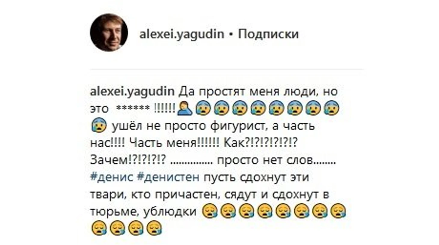 Алексей Ягудин: «Пусть сядут и сдохнут в тюрьме твари, причастные к гибели Тена»