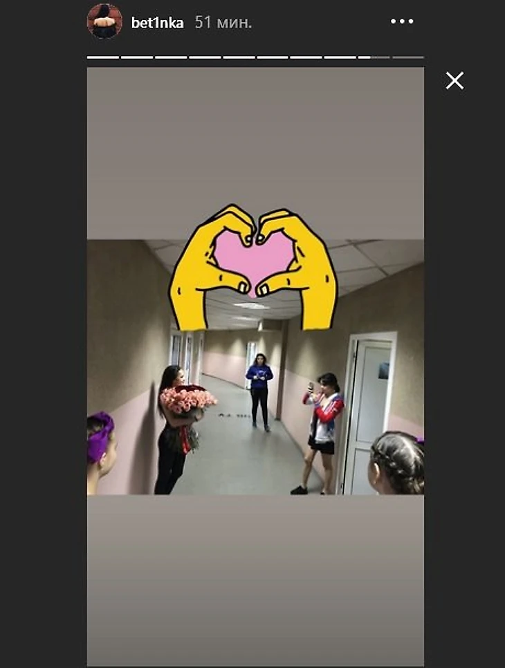 На фото, которое выложила российская фигуристка Бетина Попова, Загитова позирует с букетом роз. В качестве фотографа выступает Медведева.